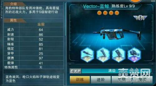 作为海豹突击队专用冲锋枪,【Vector-蓝鲸】和巨蟹座一样,以强大火力和极快射速纵横沙场!战场交锋,生死只在一瞬之间,而蓝鲸就拥有高达86点的惊人射速,觉醒后还能为你提供战场加速的技能,在短时间内提高人物移速,让突击手们有更灵动的身法,成就近战之王的称号!