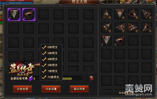 可以回收符文。回收不同阶数的符文可获得不同的符文精华,阶数越高,获得精华越多