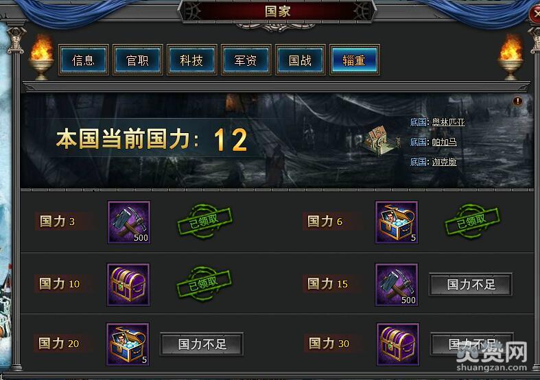 XY游戏《列王争霸》当中,在国家按钮弹出的对话框中有一个辎重按钮(第6个),点开之后可以查看当前的本国国力。国力达到一定值后就可以领取奖励。下面小编就带大家一起去看看,XY游戏《列王争霸》辎重领取奖励一览。