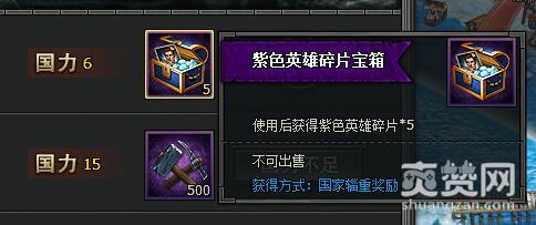 紫色英雄碎片宝箱:使用后获得紫色英雄碎片*5。