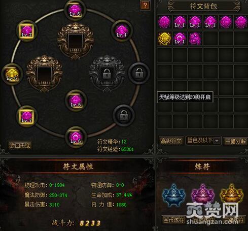 在923yx《战天》中,符文的种类有很多,比如祝福、激怒、猛攻、忍耐、内力等等属性。只要各位大侠的天赋等级达到26级,就可以从天赋界面进入符文系统了。而若想获得符文,则可以通过炼符玩法。炼符玩法有三种,分别为金币炼符、元宝炼符和一键炼符。