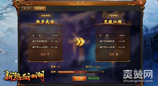 玩家获得的名声点数可以兑换名声称号,称号可以为玩家角色提供生命值、减少受宠物伤害、减少受BOSS伤害的属性加成。称号可以使用名声点升级,称号等级越高,属性越好,加成的战斗力也会急剧增高。想要名动江湖誉满天下,就来试试全新的名声系统吧!