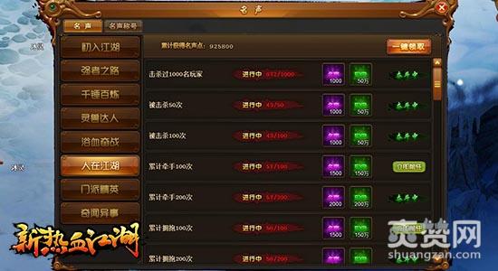 人在江湖,岂能碌碌无为、平庸一生?腾讯平台《新热血江湖》名声系统全面改版来袭,八大类过百种江湖成就,助你声名远扬、誉满天下!名声系统更有丰富的经验、元宝等奖励等待你来一键领取!腾讯《新热血江湖》现于QQ空间、QQ游戏大厅同步火爆开服中!