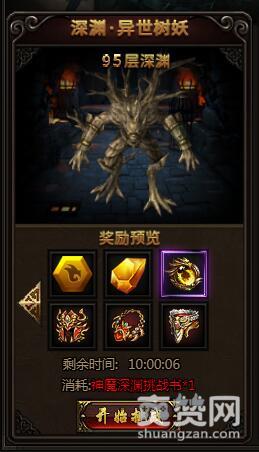 深渊·异世树妖。盘踞在95层深渊之中,也就是说当玩家通关普通模式第95层,就一定会刷出这个BOSS来。