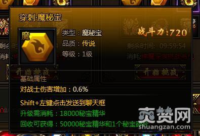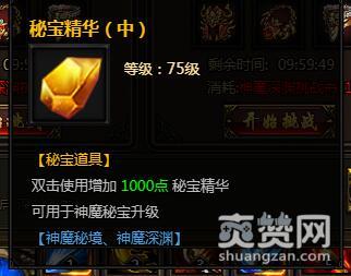 深渊·异世树妖进入时需要消耗神魔深渊挑战书1本。挑战书可以在神魔秘境中刷。掉落的宝物分别是(并不是一定掉,有些宝物是含概率掉落的):穿刺·魔秘宝(传说)、秘宝精华(中)、BOSS精华(中)、天启战盔(10转)、天启战链(10转)、天启战带(10转)。其中最极品的自然属于穿刺·魔秘宝了。作为品质传说的魔秘宝,它能在PK时给玩家带来对战士伤害增加0.6%的效果。如果打出实属不易,玩家多多珍惜。
