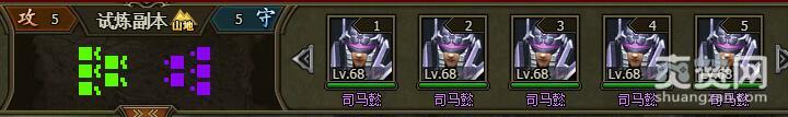 我们试着挑战一下困难难度的司马懿,进入战场,战场地形是山地,对手是5个司马懿68级。