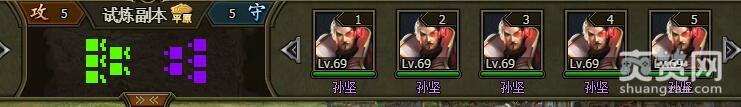 我们试着挑战一下困难难度的孙坚,进入战场,战场地形是平原,对手是5个孙坚69级。