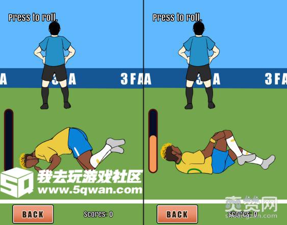 我去玩《翻滚吧内马尔》的玩法很简单,玩家只需要控制角色不断翻滚以表现出痛苦状来误导裁判,让裁判以为角色受伤并将对手红牌罚下,就可以获得分数赢得胜利。这个过程十分有趣,简单的画面就让人爆笑不已。虽然操作十分简单,但想要获得分数却不是一件容易的事情。只有在正确的时机将角色痛苦的表情呈现在裁判眼前,玩家才能得到分数,真所谓球场如戏,全凭演技。