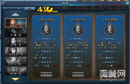 43u《阴阳劫》神灵系统位于常驻中间主菜单,快捷键为K。玩家可以通过开启神灵系统,获得相应的角色出战。神灵怒气值满,即可开启神灵变身。变身期间,人物技能将被相应的出战角色代替。