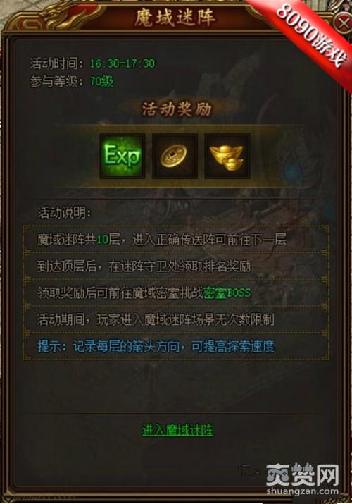 在各类游戏中,金币都是一个不可或缺的存在,8090《屠龙荣耀》也是一样,装备的强化需要大量的金币,动辄就是上千万,有时一次不成功,还要花费好几次,这么多钱,上哪去攒呢?各位玩家小伙伴们不必担心,想要在短时间内积攒大量的金币?那就来试试8090《屠龙荣耀》魔域迷阵吧!