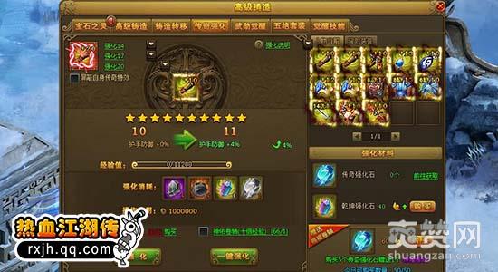 武器强化是腾讯《热血江湖传》中提升角色能力的途径之一,除基础强化之外,全新的传奇强化可以使武器达到更高的强化品质,使其属性得到更加全面的提升。