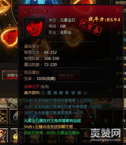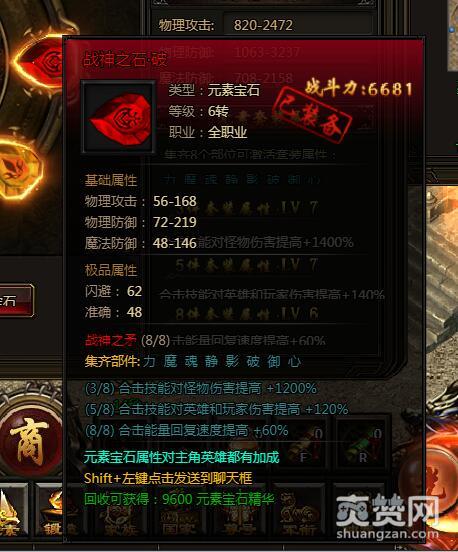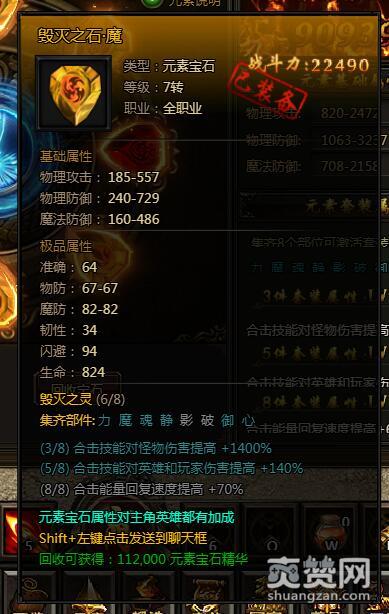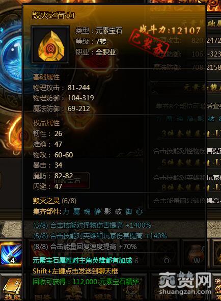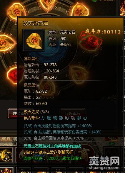 如果能集齐5个部件,合击技能对英雄和玩家伤害提高+140%。