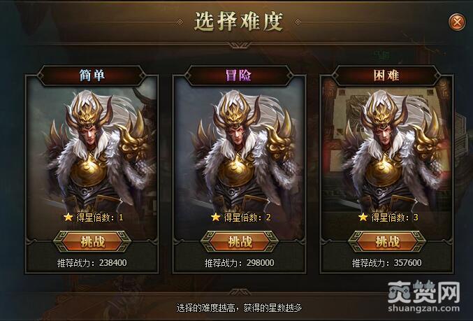 第43关对手是马超。简单模式下推荐战力238400,可得1颗星;冒险模式下推荐战力298000,可得2颗星;困难模式下推荐战力357600,可得3颗星。