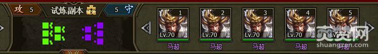 我们试着挑战一下困难难度的马超,进入战场,战场地形是城池,对手是5个马超70级。