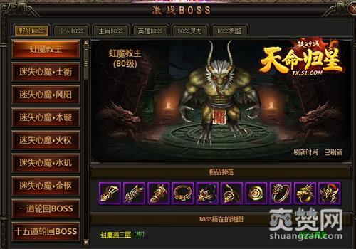 ⑤接下来就是野外BOSS激情了,有装备拿,有人PK,还是挺爽的,爆率也不错,到时间了记得去玩耍哦