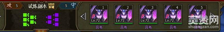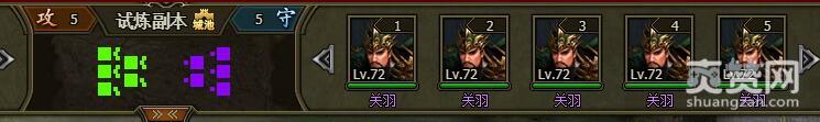 我们试着挑战一下困难难度的关羽,进入战场,战场地形是城池,对手是5个关羽72级。