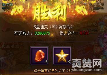 战胜后,获得试炼石*6,星星*9。