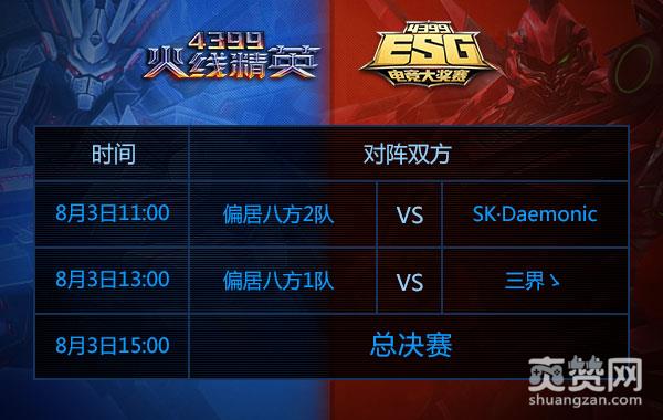 8月3日-8月5日,为期3天的4399电竞大奖赛(ESG)2018夏季赛线下总决赛将在上海“中国国际数码互动娱乐展览会N2馆(ChinaJoy)”展会现场强势开战,敬请锁定!