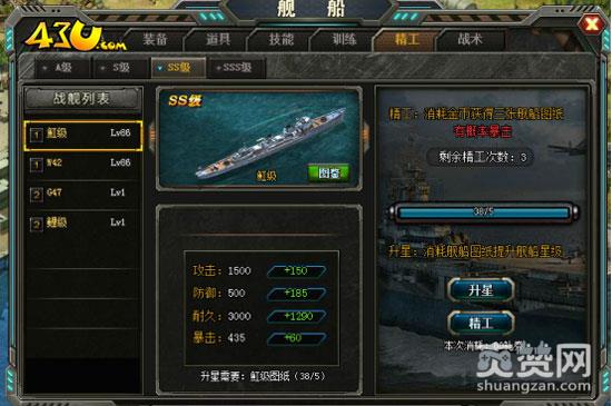 玩家们可以对绿色及以上的舰船进行精工,在舰船精工中可以获得舰船的图纸,将魂可以提升舰船的星级,星级越高,激活的技能越多。当舰船技能升级的材料足够时,就可以开启船的技能了。