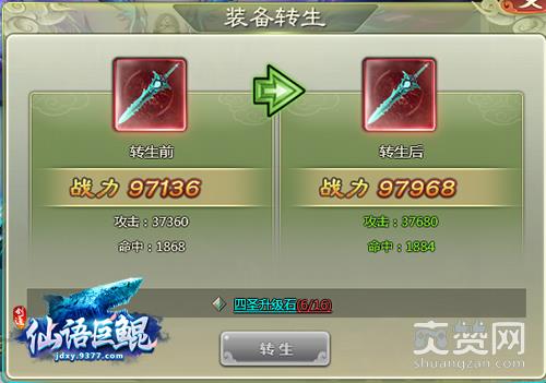 在9377《仙语巨鲲》当中,对于已经获得的四圣装备,仙侠道友们同样可以对其进行强化打造,包括装备转生以及装备升品。其中四圣装备转生打造需要消耗“四圣升级石”,升品打造则需要消耗“四圣升品石”,均可以提升装备所拥有的属性。