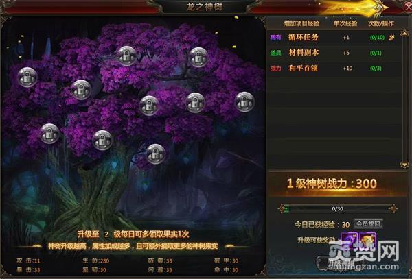 龙之神数结千年圣果为你的修行加快进度,神树升级依靠玩家完成每日任务获得神树经验值来提升,神树的等级越高属性加成越多并且你可以额外摘取更多的神树果实,专心培养神树成长你的升级效率会比别人更加快速到达顶级时实力也更加雄厚!