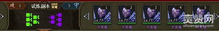 我们试着挑战一下困难难度的太史慈,进入战场,战场地形是水域,对手是5个太史慈77级。