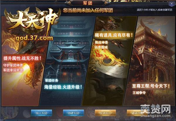 玩游戏最主要的是什么?当然是和一群志同道合的兄弟一起战斗!37《大天神》的玩家可以在游戏主界面的右上角进入军团系统,该玩法既可申请加入他人军团,还可以创建属于自己的军团,成功加入或创建军团后,立刻就享有军团专属特权。