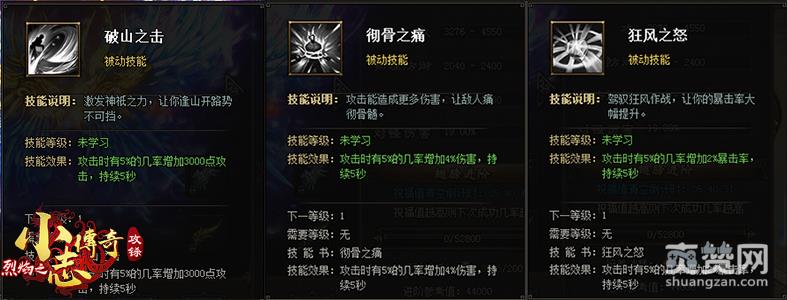 破山之击—攻击时有5%几率增加3000点攻击,持续5秒(1级)