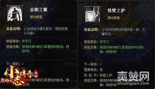铁壁之护—攻击时有5%几率增加5000点防御,持续5秒(1级)