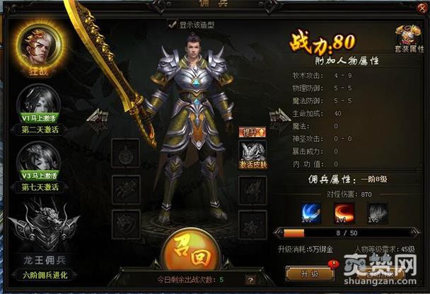 佣兵出战双倍伤害让战斗更加轻松,每个玩家都可以获得一个基础的佣兵,佣兵可以通过提升等级来增加他的伤害以及赋予角色的更多属性,佣兵还可以佩戴装备以及皮肤,一旦装备搜集成功佣兵的实力将会大大提升,一刀秒BOSS不是问题,搜集龙王激活丹还能召唤远古佣兵,战力翻倍热血翻倍!