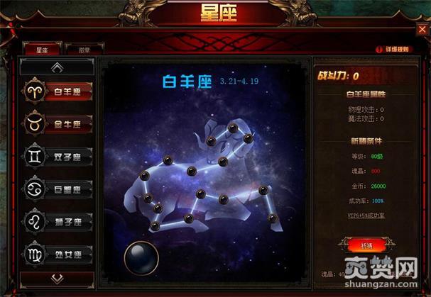 星座祈福属性全面升级,玩家可以通过小号魂晶来进行星座属性激活,每当星座被点亮都会获得不同的属性加成,等级越高的星座升级成功率会逐渐降低,玩家可以通过提升VIP等级来增加成功率,魂晶获得方式来源精英挑战,想要全面升级就要拿出你的实力!