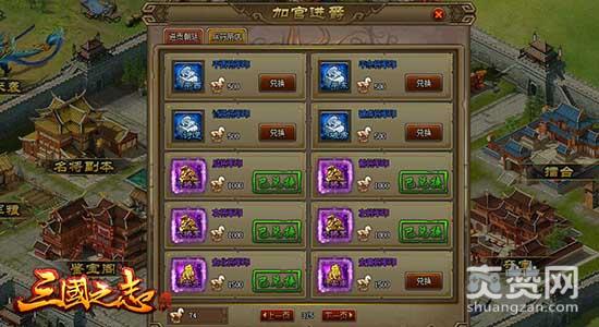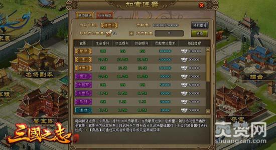 加官进爵,升职加薪,成为万众敬仰的无上帝皇,腾讯平台《三国之志2》朝廷进贡全新玩法创新来袭,为朝廷进贡贡品不但能提升职位获得特殊加成,还能使用贡品兑换各种兵符,大幅提升将领实力,征服天下指日可待!腾讯《三国之志2》现于QQ空间、QQ游戏大厅同步火爆开服中!