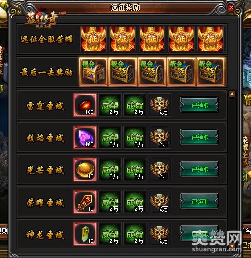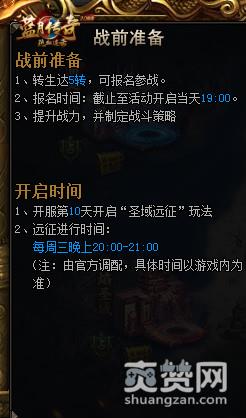 圣域远征包含神龙圣域、雷霆圣域、烈焰圣域、光芒圣域、荣耀圣域五大圣域。在活动开启后是5个圣域同时进行争夺,可以随意进入你想去的圣域。在战场内,是以区服为单位的,所以想在圣域远征取得好成绩,就必须要团结一致对外。