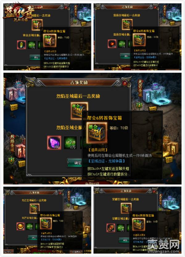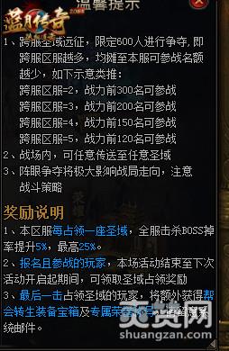 占领一座圣域的奖励是:全区服的击杀BOSS掉率上升5%,最高可提高25%。说不定下一件主宰装备就是你的了。