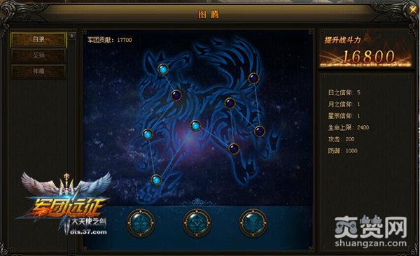 2、二级以上的军团开放有图腾系统,每个图腾包含日、月、星辰三种信仰,激活和升级这些信仰可以增加人物属性。