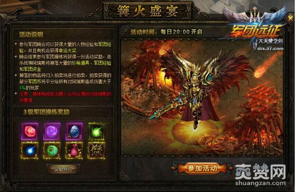 37《大天使之剑》的军团系统每日可开启1次篝火盛宴活动,持续10分钟,活动开启后军团成员在篝火区域可获得大量经验,同时还可以免费参加刮刮乐抽奖。