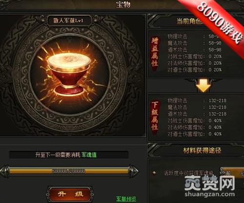 在8090《散人传说》中,大家通过完成日常任务可以获得活跃度,活跃度可以兑换成军魂瓶,军魂瓶的使用方法和经验玉的方法一样,只需通过特定的渠道即可收集满,军魂可以用来升级散人军鼓,军鼓可以PK神器,能够给角色带来很多的额外加成。