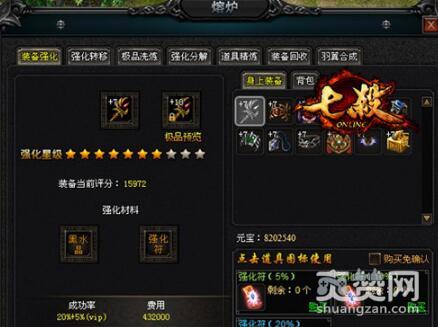 923yx《七杀》中的熔炉系统共包括七部分,分别为装备强化、强化转移、极品洗练、强化分解、道具精炼、装备回收、羽翼合成。其中,装备强化、强化转移、极品洗练、强化分解都可以极大提升装备属性,获得更大的属性提升。