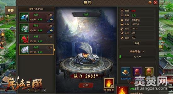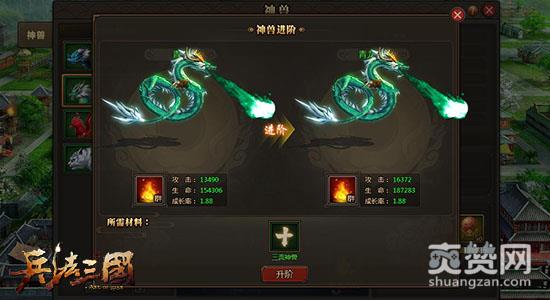 不同神兽均可通过各种活动获得,每个神兽都有不同的属性值,使用初级、中级、高级升级丹可对神兽进行升级,使用同样品质的神兽材料可以对神兽进行升阶,升级与升阶均能大幅提升神兽属性。
