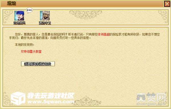 坎特伯雷大教堂是英国最古老、最著名的基督教建筑之一,同时也是世界文化遗产之一。它规模恢弘,并有厚重的人文底蕴,是无价的瑰宝。坎特伯雷大教堂位于洛斯托夫特港口的西方较远处,有一定的探索难度。要求探索的航海家拥有150点以上的探险属性。在探索时,时长要超过30分钟。