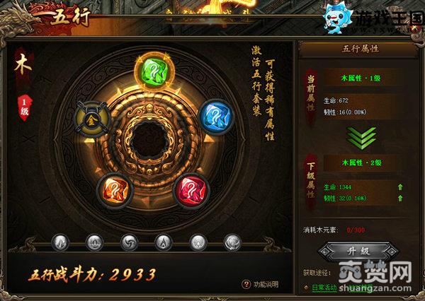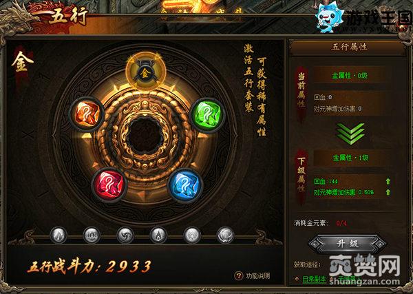 五行套装激活后,可以通过升级继续提升属性值。套装的等级越高,消耗的元素越多,相应的提升的战力也越高。当五行全部套装都达到5的倍数等级时,还可激活五行本源,大量增加五行基础属性和特殊属性。因此,玩家最好保持套装等级的一致,这样战力提升会更快一些。
