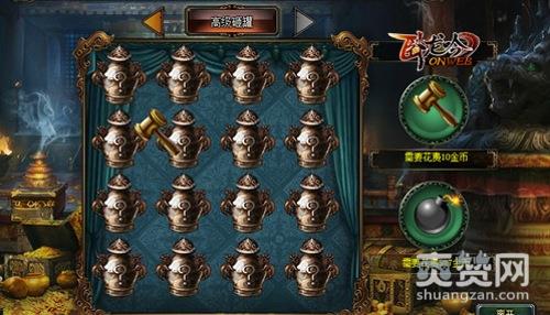 琥珀、蓝宝石、琅琊玉等进阶红将的材料尽藏于罐中,使用一个榔头可以砸开一个罐子,随机获得罐子中的珍宝。16个罐子中,珍宝随机分布,若是主公已经获得所需的材料,可以选择更新全部的罐子。每天会获得八个榔头,所以前八次的砸罐机会是免费的,与普通砸罐共享砸罐次数。