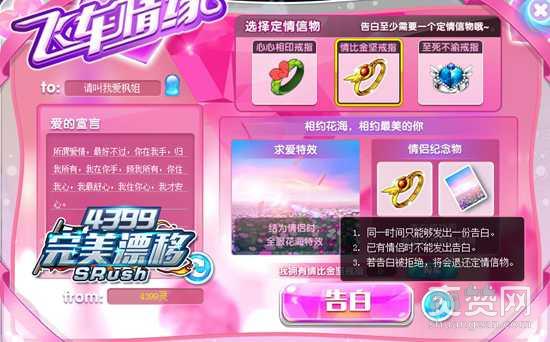 告白需要选择一个定情信物哦,大家可以自由选择购买。