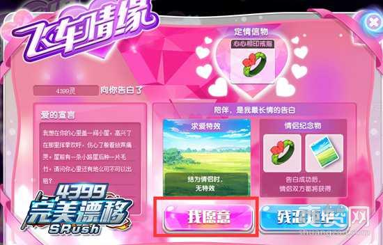 对方收到告白信后,点击我愿意,即结为情侣咯!并且同时还会收到告白人送出的情侣纪念物。