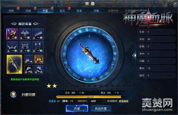 升星算是37《神魔血脉》中强化装备最容易的途径了,玩家可以在装备试炼或者商城购买升星石来对装备进行升星,每次升星都能获得一定的升星经验,经验满后即可升一星,升星等级越高,消耗的升星石越多,但升星后获得的属性也会越高哦!