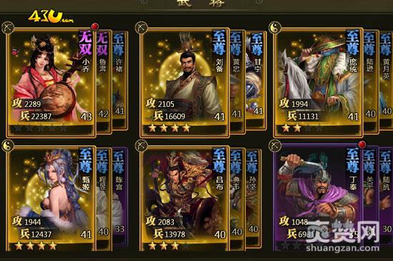 作为一款策略性国战游戏,43u《雄霸九州》怎么能少了武将招募这一经典玩法呢!此处招募武将的方式有三种,第一种是通过招募令来获取,招募到高级别的武将的可能性最大;第二种是点将台,需要花费五铢钱,烈酒或者元宝,招募到武将的几率比较低;第三种是首充之后送的甄姬了。而招募到武将之后就是需要各种强化等。还有一个比较有意思的就是武将系统中的副将系统,为武将配备副将也是提高武将属性的方式之一。