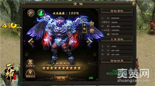 43u《灭神》里宠物系统共有苍龙、白虎、朱雀、玄武,天之四灵,以正四方,据说天下禽兽皆由这四大神兽血脉变化而来!达到13级便可激活宠物系统重现白虎神威。