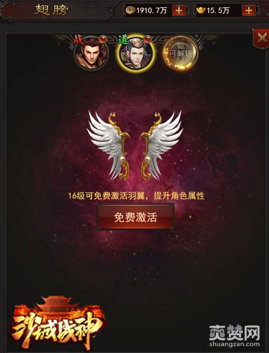 在《沙城战神》中,玩家达到16级即可免费激活羽翼,羽翼不仅可以呈现出更加威武霸气的外观,更能为角色增加永久属性。