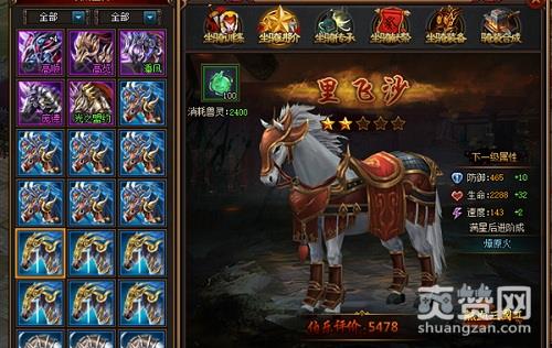 而坐骑的装备,即马装,则需要用低阶的合成,才能有更加高阶的马装,而一匹马可以使用5件不同的装备,马装所带来的属性也是非常之给力的,追求极致的玩家,一定不能错过!