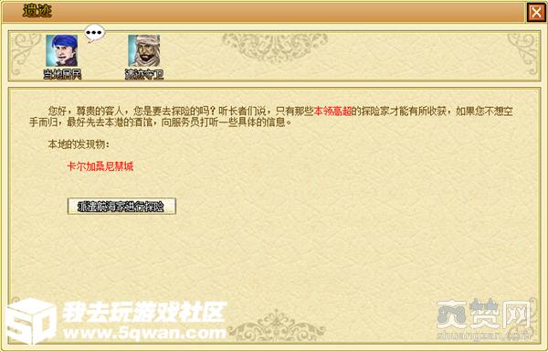 通过马赛酒馆服务员的情报,我们可以了解到卡尔加桑尼禁城的所有探险信息。卡尔加桑尼禁城位于马塞港口的北边不远处,需要15分钟的路程。当航海家的探险属性值达到150点以上时,可尝试去探索这座城堡。但值得注意的是,马塞港口附近海盗横肆,且有暗礁,所以即便所有条件都满足了,也有可能发现不了城堡。